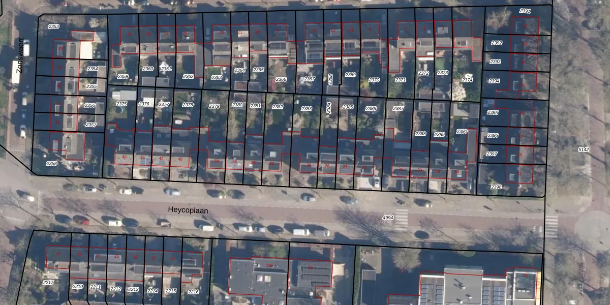 Het perceel waarop Heycoplaan 30 staat heeft een oppervlakte van 281 m². Dit is een middelgroot perceel. De perceeloppervlakte wordt geregistreerd door het Kadaster. Gedetailleerde informatie over de maten van dit perceel kunt u vinden in het rapport Kadastrale kaart met maatvoering van Heycoplaan 30.