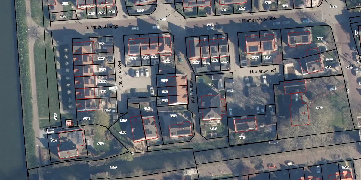 Het perceel waarop Hortense hof 5 staat heeft een oppervlakte van 87 m². Dit is een klein perceel. De perceeloppervlakte wordt geregistreerd door het Kadaster. Gedetailleerde informatie over de maten van dit perceel kunt u vinden in het rapport Kadastrale kaart met maatvoering van Hortense hof 5.