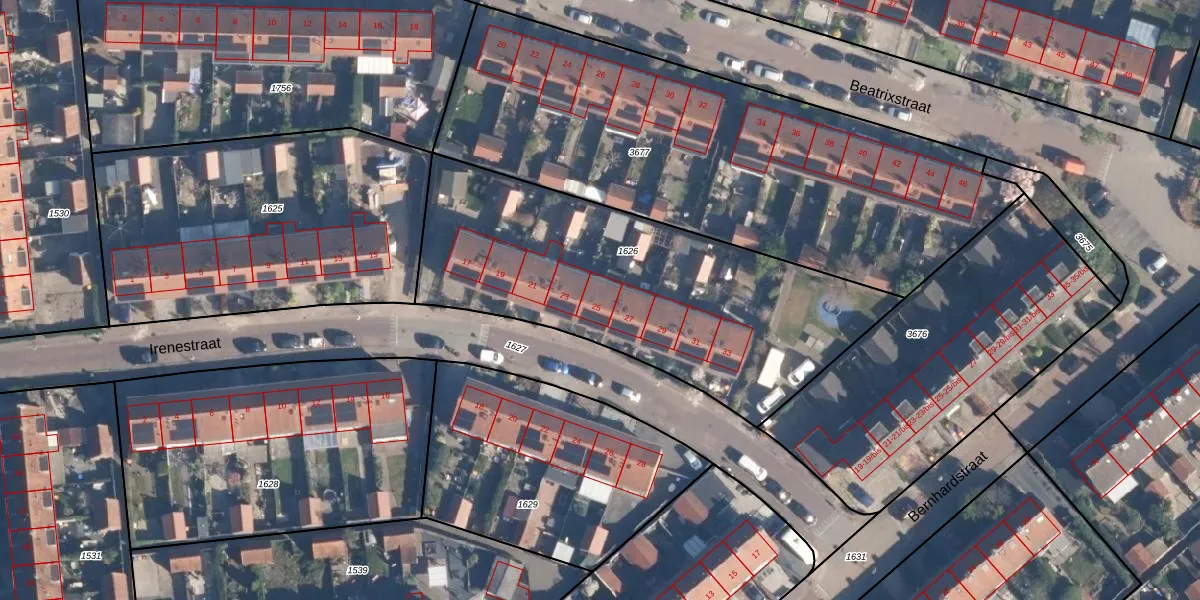 Het perceel waarop Irenestraat 25 staat heeft een oppervlakte van 1745 m². Dit is een zeer groot perceel. De perceeloppervlakte wordt geregistreerd door het Kadaster. Gedetailleerde informatie over de maten van dit perceel kunt u vinden in het rapport Kadastrale kaart met maatvoering van Irenestraat 25.