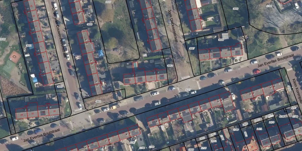 Jan Evertse Boutstraat 12 is gelegen op kadastraal perceel BKL07B3666. Deze kadastrale aanduiding is uniek en wordt gebruikt door het Kadaster om eigendomsrechten en andere zakelijke rechten vast te leggen. Het perceel maakt onderdeel uit van de kadastrale gemeente Breukelen-Nijenrode.