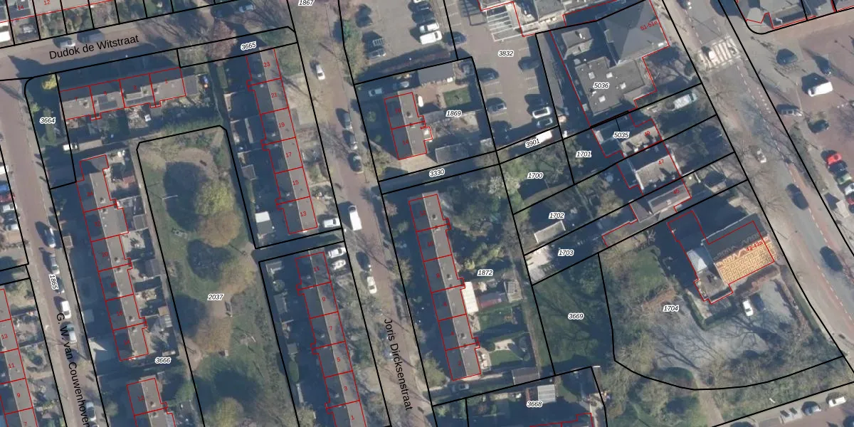 Het perceel waarop Joris Dircksenstraat 12 staat heeft een oppervlakte van 1500 m². Dit is een zeer groot perceel. De perceeloppervlakte wordt geregistreerd door het Kadaster. Gedetailleerde informatie over de maten van dit perceel kunt u vinden in het rapport Kadastrale kaart met maatvoering van Joris Dircksenstraat 12.