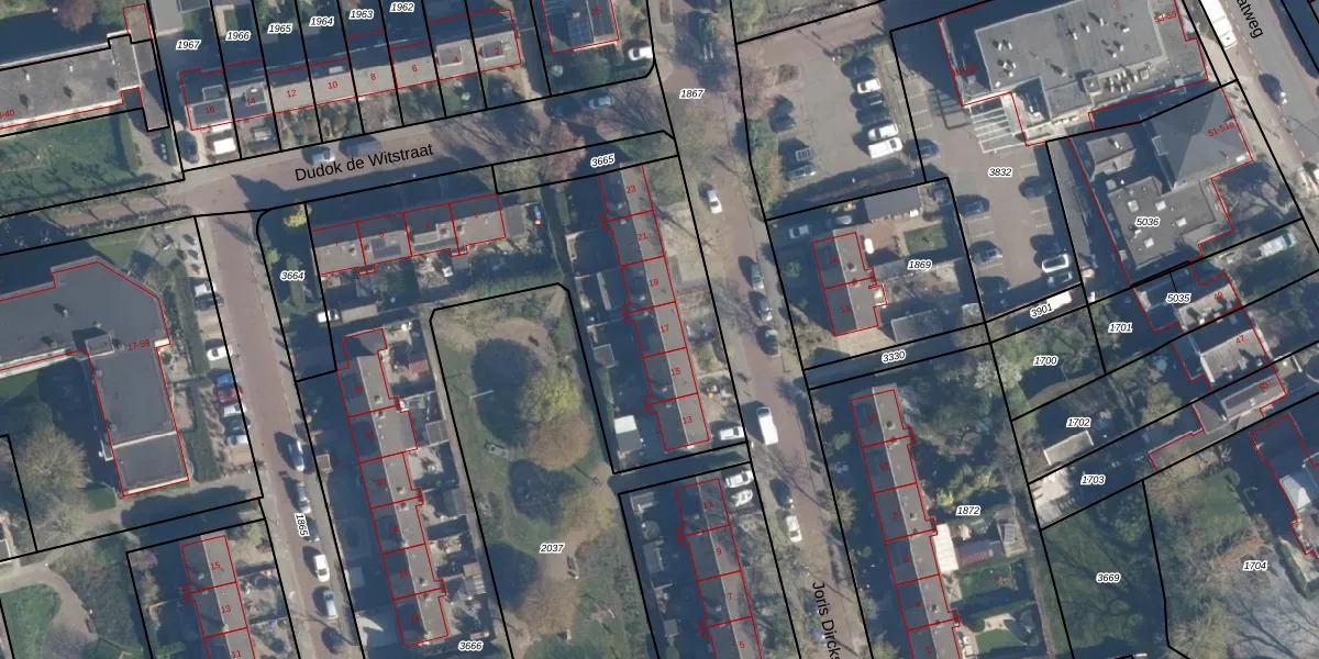 Het perceel waarop Joris Dircksenstraat 17 staat heeft een oppervlakte van 5380 m². Dit is een zeer groot perceel. De perceeloppervlakte wordt geregistreerd door het Kadaster. Gedetailleerde informatie over de maten van dit perceel kunt u vinden in het rapport Kadastrale kaart met maatvoering van Joris Dircksenstraat 17.