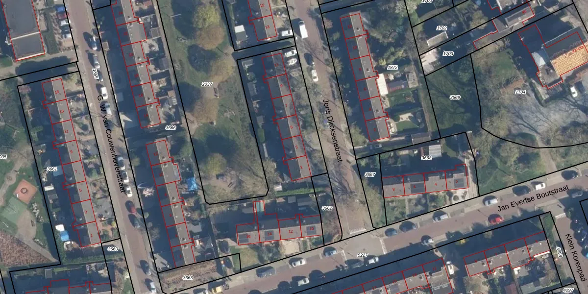Het perceel waarop Joris Dircksenstraat 3 staat heeft een oppervlakte van 5380 m². Dit is een zeer groot perceel. De perceeloppervlakte wordt geregistreerd door het Kadaster. Gedetailleerde informatie over de maten van dit perceel kunt u vinden in het rapport Kadastrale kaart met maatvoering van Joris Dircksenstraat 3.