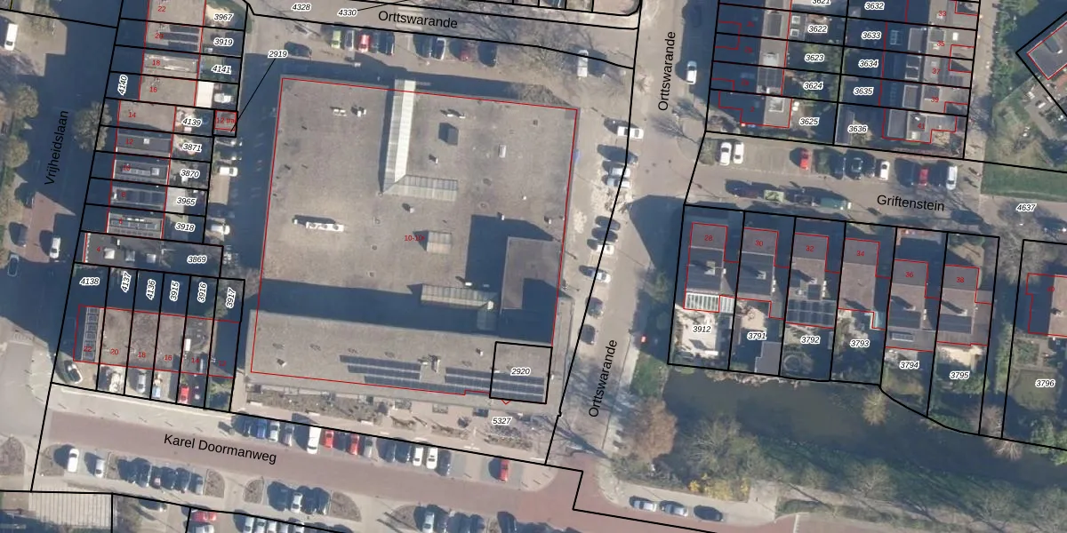 Het perceel waarop Karel Doormanweg 10-b staat heeft een oppervlakte van 5159 m². Dit is een zeer groot perceel. De perceeloppervlakte wordt geregistreerd door het Kadaster. Gedetailleerde informatie over de maten van dit perceel kunt u vinden in het rapport Kadastrale kaart met maatvoering van Karel Doormanweg 10-b.