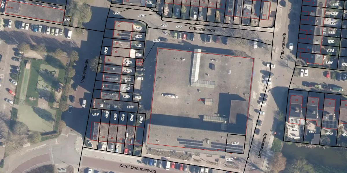 Het perceel waarop Karel Doormanweg 10-l staat heeft een oppervlakte van 5159 m². Dit is een zeer groot perceel. De perceeloppervlakte wordt geregistreerd door het Kadaster. Gedetailleerde informatie over de maten van dit perceel kunt u vinden in het rapport Kadastrale kaart met maatvoering van Karel Doormanweg 10-l.