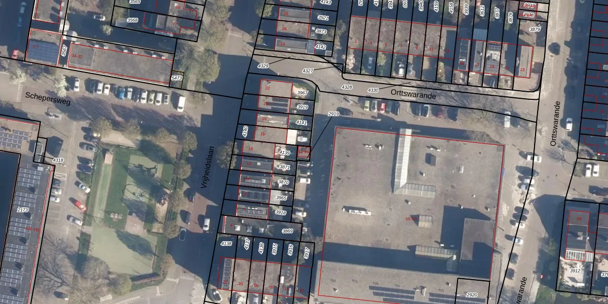 Gebruik de zoekbalk of klik op een perceel voor informatie over de adressen binnen dit perceel.