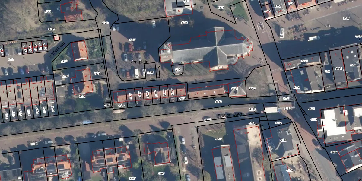Het perceel waarop Kerkplein 4 staat heeft een oppervlakte van 61 m². Dit is een klein perceel. De perceeloppervlakte wordt geregistreerd door het Kadaster. Gedetailleerde informatie over de maten van dit perceel kunt u vinden in het rapport Kadastrale kaart met maatvoering van Kerkplein 4.
