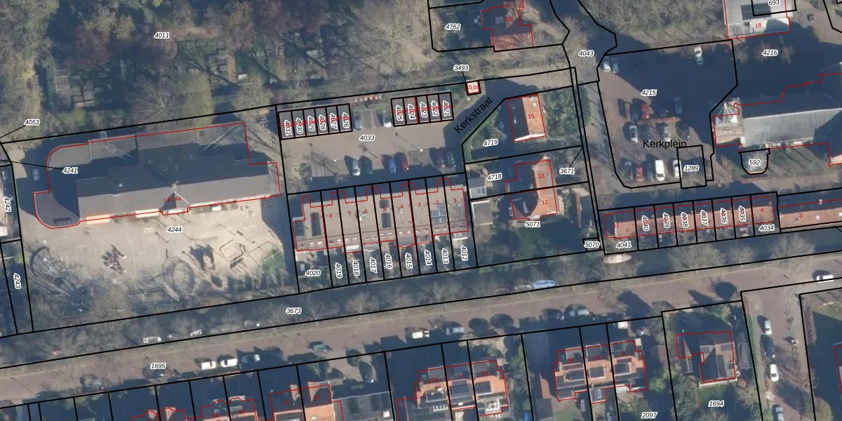 Het perceel waarop Kerkstraat 3 staat heeft een oppervlakte van 97 m². Dit is een klein perceel. De perceeloppervlakte wordt geregistreerd door het Kadaster. Gedetailleerde informatie over de maten van dit perceel kunt u vinden in het rapport Kadastrale kaart met maatvoering van Kerkstraat 3.