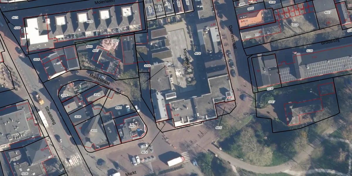 Het perceel waarop Keyseryck 8 staat heeft een oppervlakte van 2820 m². Dit is een zeer groot perceel. De perceeloppervlakte wordt geregistreerd door het Kadaster. Gedetailleerde informatie over de maten van dit perceel kunt u vinden in het rapport Kadastrale kaart met maatvoering van Keyseryck 8.