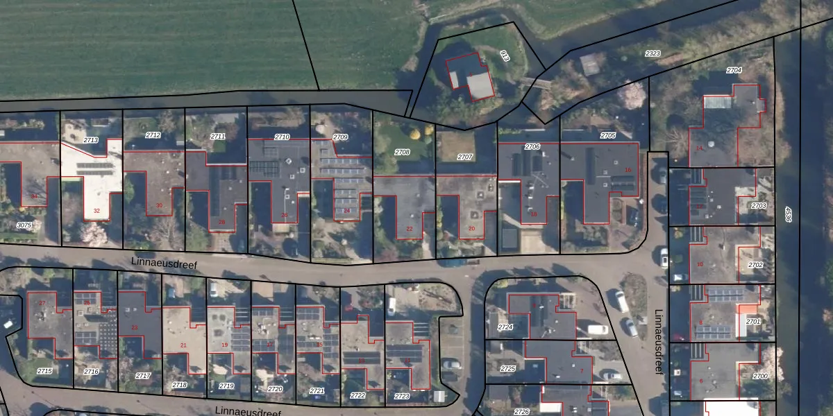 Het perceel waarop Linnaeusdreef 22 staat heeft een oppervlakte van 525 m². Dit is een groot perceel. De perceeloppervlakte wordt geregistreerd door het Kadaster. Gedetailleerde informatie over de maten van dit perceel kunt u vinden in het rapport Kadastrale kaart met maatvoering van Linnaeusdreef 22.