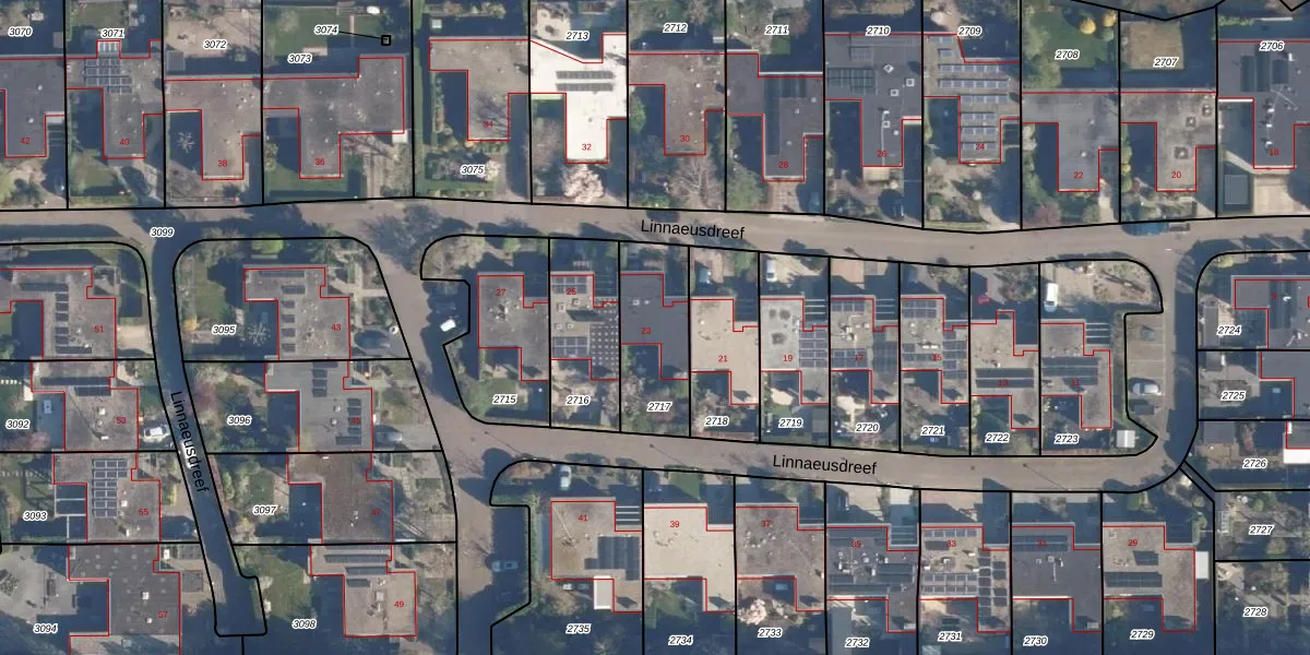 Gebruik de zoekbalk of klik op een perceel voor informatie over de adressen binnen dit perceel.