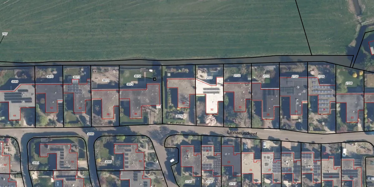Linnaeusdreef 34 is gelegen op kadastraal perceel BKL07B3075. Deze kadastrale aanduiding is uniek en wordt gebruikt door het Kadaster om eigendomsrechten en andere zakelijke rechten vast te leggen. Het perceel maakt onderdeel uit van de kadastrale gemeente Breukelen-Nijenrode.