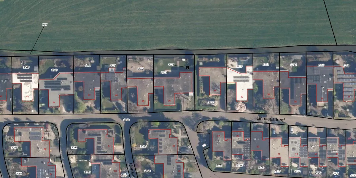 Linnaeusdreef 36 is gelegen op kadastraal perceel BKL07B3073. Deze kadastrale aanduiding is uniek en wordt gebruikt door het Kadaster om eigendomsrechten en andere zakelijke rechten vast te leggen. Het perceel maakt onderdeel uit van de kadastrale gemeente Breukelen-Nijenrode.
