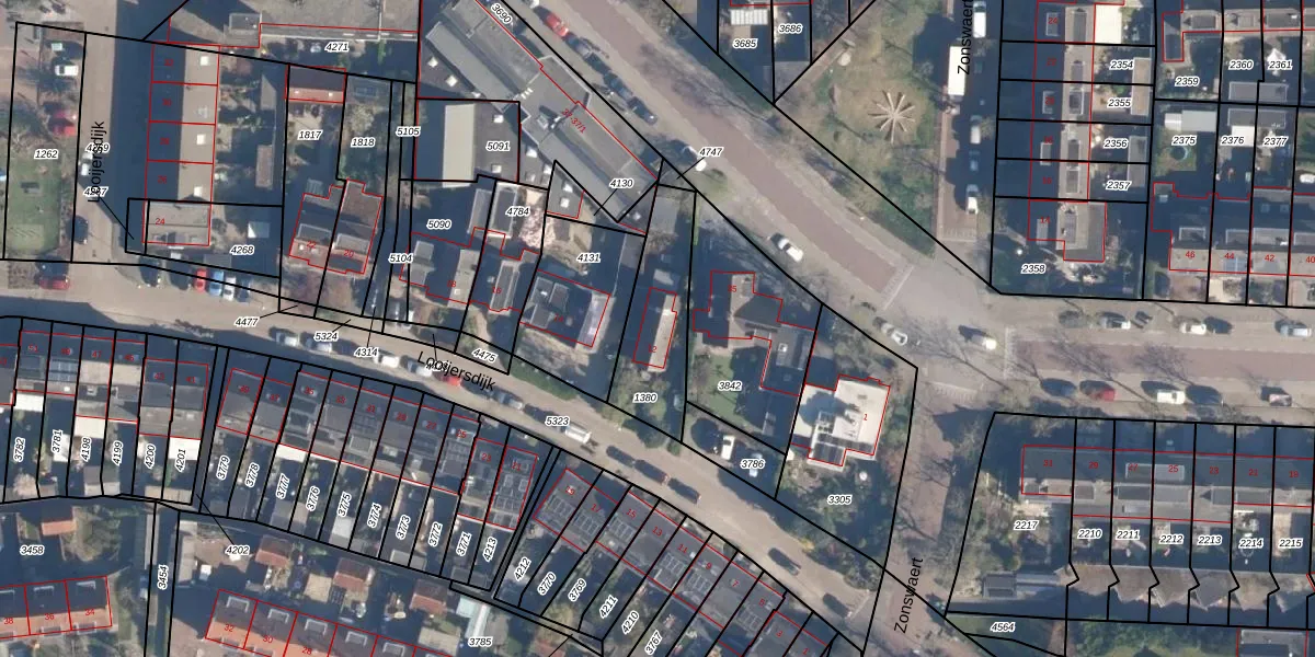 Gebruik de zoekbalk of klik op een perceel voor informatie over de adressen binnen dit perceel.