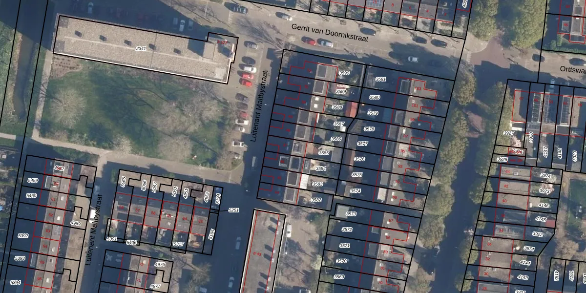 Gebruik de zoekbalk of klik op een perceel voor informatie over de adressen binnen dit perceel.
