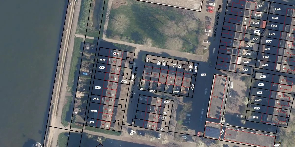 Gebruik de zoekbalk of klik op een perceel voor informatie over de adressen binnen dit perceel.