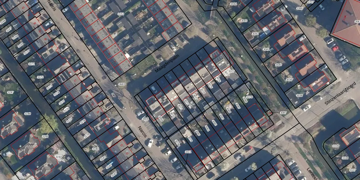 Gebruik de zoekbalk of klik op een perceel voor informatie over de adressen binnen dit perceel.