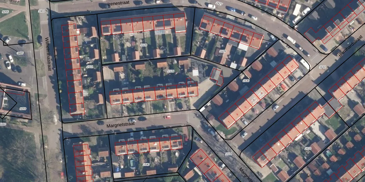 Het perceel waarop Margrietstraat 13 staat heeft een oppervlakte van 1878 m². Dit is een zeer groot perceel. De perceeloppervlakte wordt geregistreerd door het Kadaster. Gedetailleerde informatie over de maten van dit perceel kunt u vinden in het rapport Kadastrale kaart met maatvoering van Margrietstraat 13.