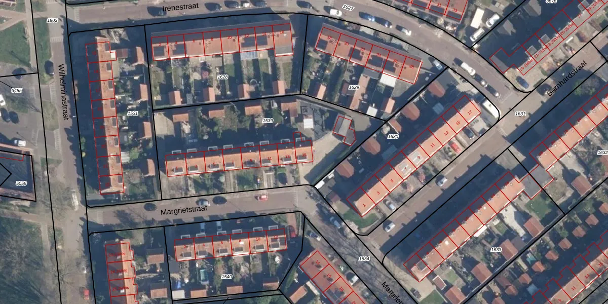 Het perceel waarop Margrietstraat 15 staat heeft een oppervlakte van 1878 m². Dit is een zeer groot perceel. De perceeloppervlakte wordt geregistreerd door het Kadaster. Gedetailleerde informatie over de maten van dit perceel kunt u vinden in het rapport Kadastrale kaart met maatvoering van Margrietstraat 15.