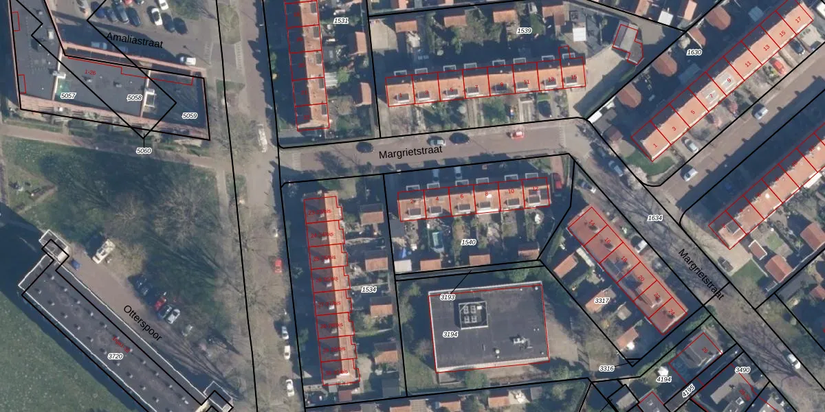 Het perceel waarop Margrietstraat 2 staat heeft een oppervlakte van 1065 m². Dit is een zeer groot perceel. De perceeloppervlakte wordt geregistreerd door het Kadaster. Gedetailleerde informatie over de maten van dit perceel kunt u vinden in het rapport Kadastrale kaart met maatvoering van Margrietstraat 2.
