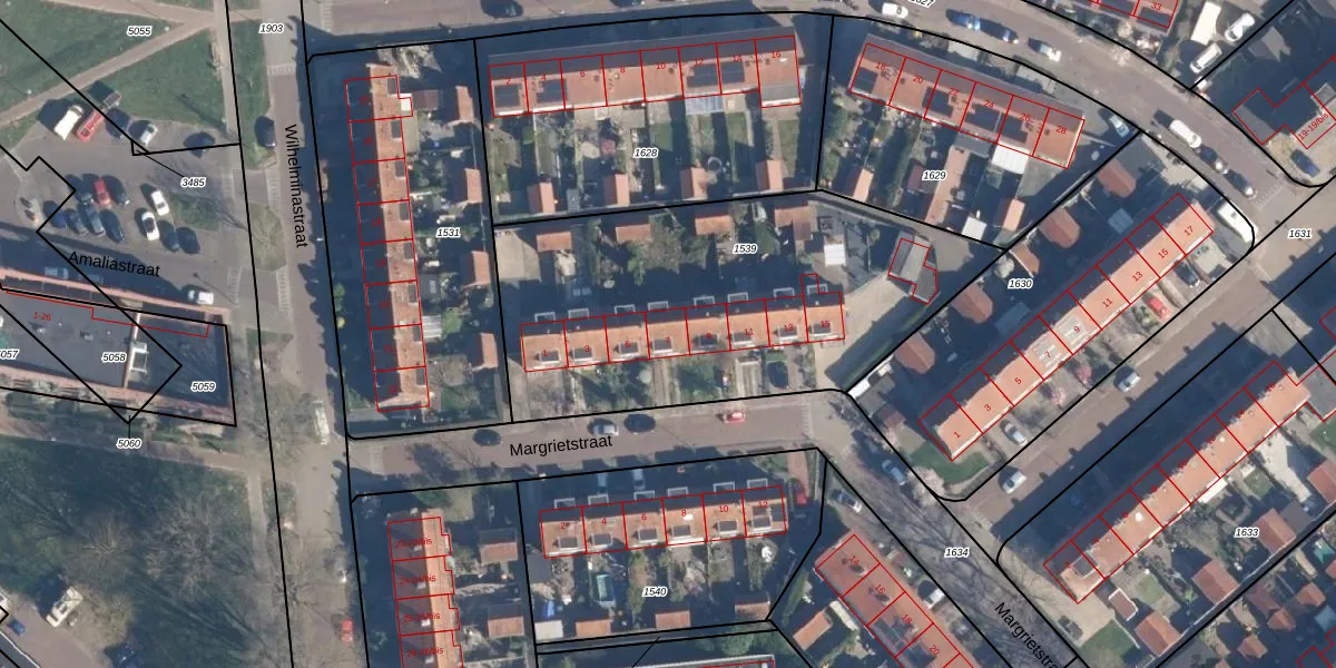 Het perceel waarop Margrietstraat 7 staat heeft een oppervlakte van 1878 m². Dit is een zeer groot perceel. De perceeloppervlakte wordt geregistreerd door het Kadaster. Gedetailleerde informatie over de maten van dit perceel kunt u vinden in het rapport Kadastrale kaart met maatvoering van Margrietstraat 7.