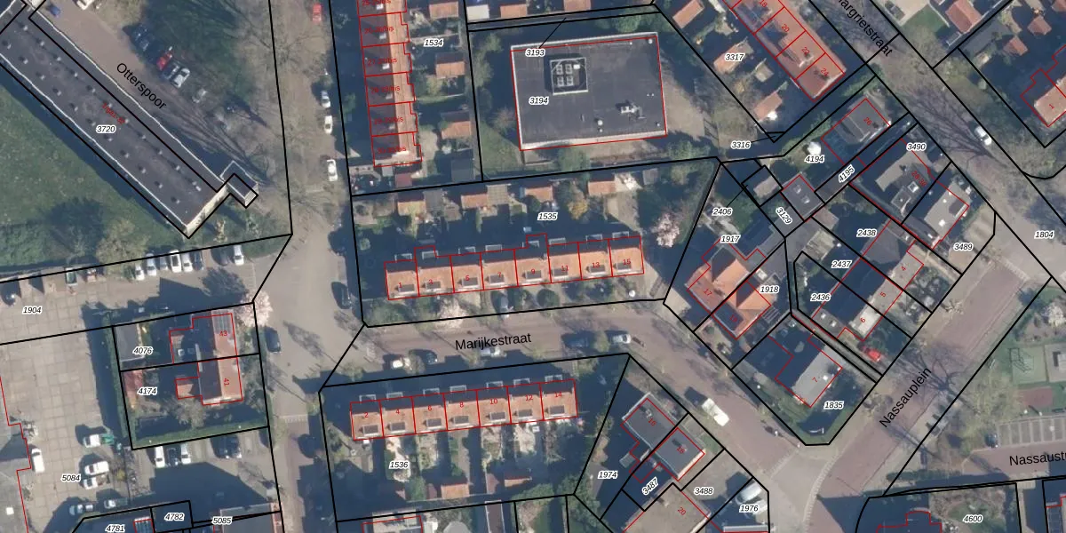 Het perceel waarop Marijkestraat 9 staat heeft een oppervlakte van 1592 m². Dit is een zeer groot perceel. De perceeloppervlakte wordt geregistreerd door het Kadaster. Gedetailleerde informatie over de maten van dit perceel kunt u vinden in het rapport Kadastrale kaart met maatvoering van Marijkestraat 9.