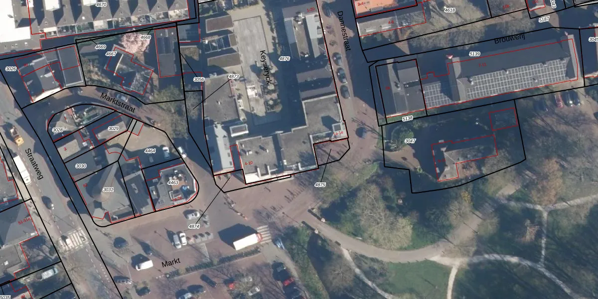 Het perceel waarop Markt 10 staat heeft een oppervlakte van 2820 m². Dit is een zeer groot perceel. De perceeloppervlakte wordt geregistreerd door het Kadaster. Gedetailleerde informatie over de maten van dit perceel kunt u vinden in het rapport Kadastrale kaart met maatvoering van Markt 10.