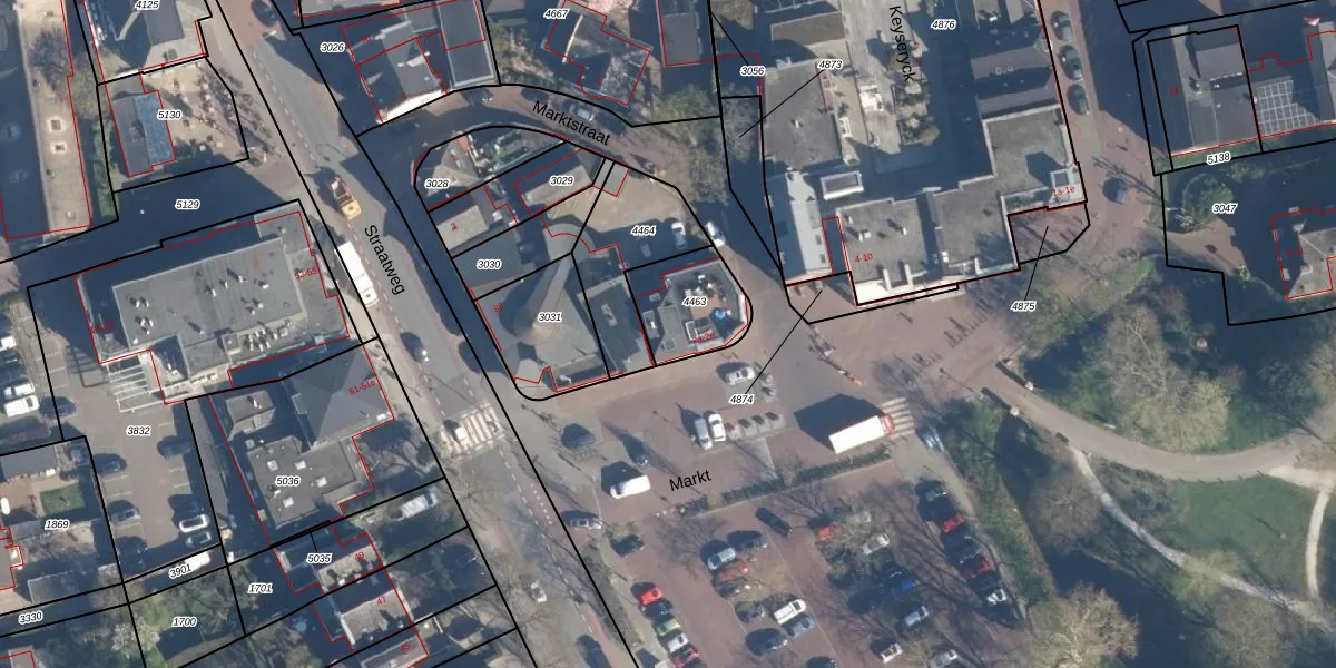 Het perceel waarop Markt 2-e staat heeft een oppervlakte van 224 m². Dit is een middelgroot perceel. De perceeloppervlakte wordt geregistreerd door het Kadaster. Gedetailleerde informatie over de maten van dit perceel kunt u vinden in het rapport Kadastrale kaart met maatvoering van Markt 2-e.