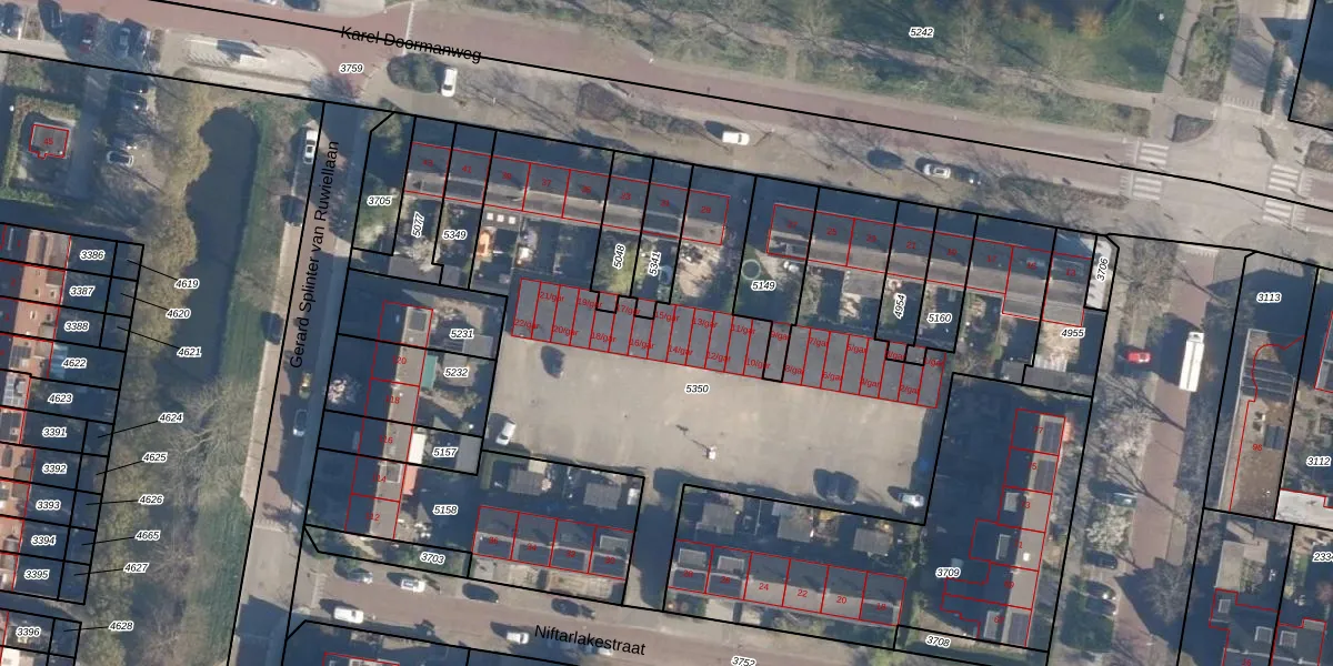 Het perceel waarop Niftarlakestraat 15-gar staat heeft een oppervlakte van 2981 m². Dit is een zeer groot perceel. De perceeloppervlakte wordt geregistreerd door het Kadaster. Gedetailleerde informatie over de maten van dit perceel kunt u vinden in het rapport Kadastrale kaart met maatvoering van Niftarlakestraat 15-gar.