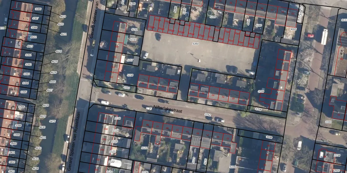 Het perceel waarop Niftarlakestraat 30 staat heeft een oppervlakte van 770 m². Dit is een groot perceel. De perceeloppervlakte wordt geregistreerd door het Kadaster. Gedetailleerde informatie over de maten van dit perceel kunt u vinden in het rapport Kadastrale kaart met maatvoering van Niftarlakestraat 30.