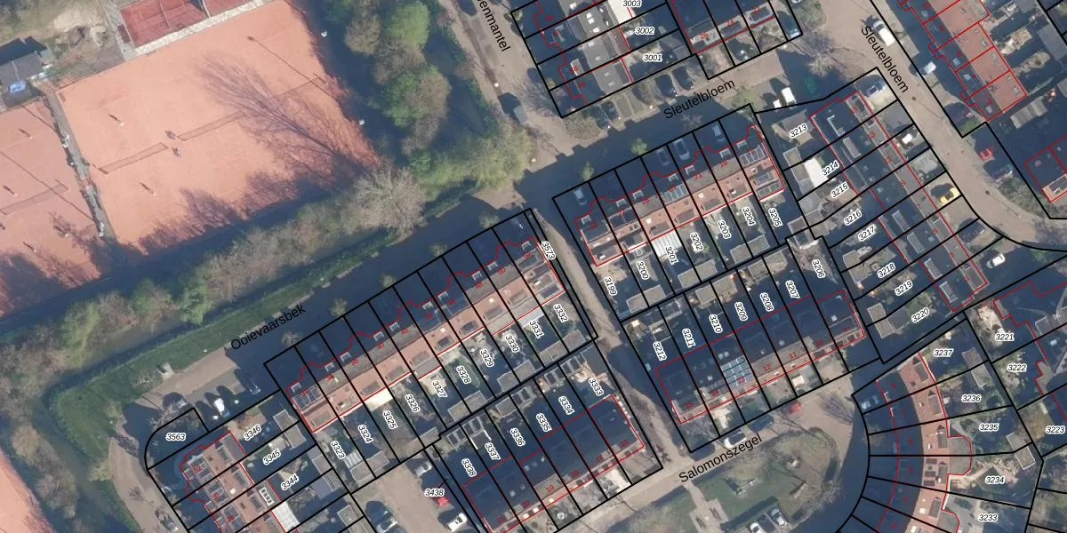 Gebruik de zoekbalk of klik op een perceel voor informatie over de adressen binnen dit perceel.