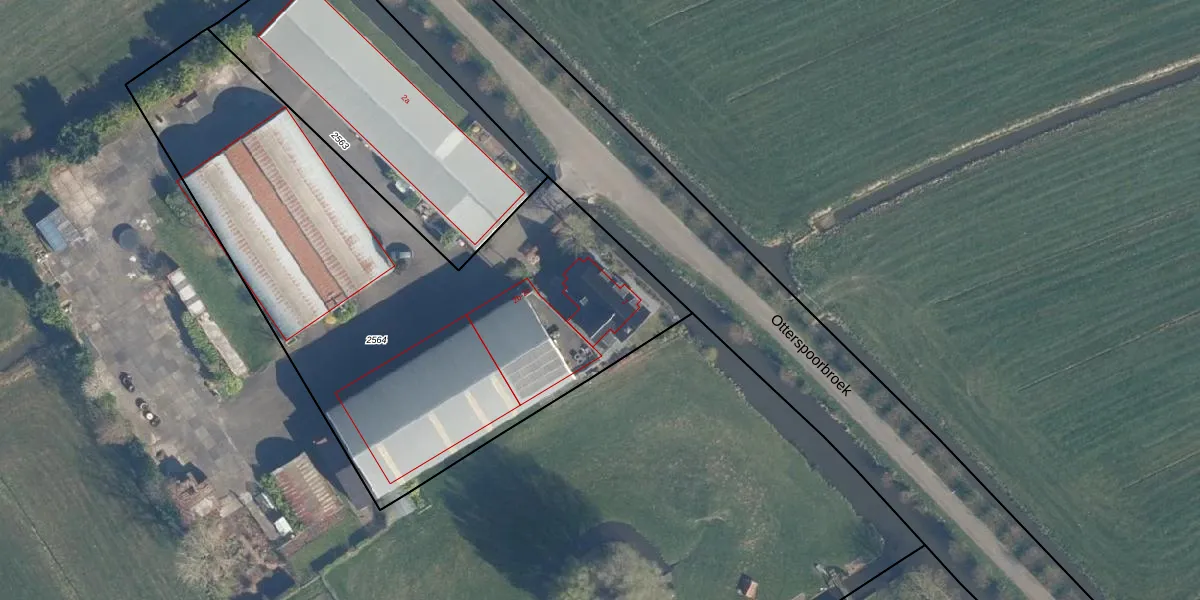 Het perceel waarop Otterspoorbroek 2 staat heeft een oppervlakte van 2965 m². Dit is een zeer groot perceel. De perceeloppervlakte wordt geregistreerd door het Kadaster. Gedetailleerde informatie over de maten van dit perceel kunt u vinden in het rapport Kadastrale kaart met maatvoering van Otterspoorbroek 2.