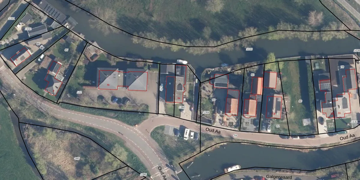 Het perceel waarop Oud Aa 4-a staat heeft een oppervlakte van 364 m². Dit is een groot perceel. De perceeloppervlakte wordt geregistreerd door het Kadaster. Gedetailleerde informatie over de maten van dit perceel kunt u vinden in het rapport Kadastrale kaart met maatvoering van Oud Aa 4-a.