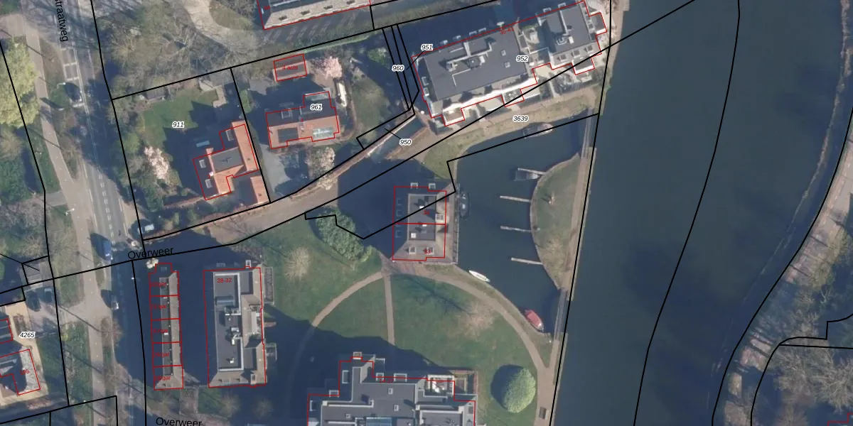 Het perceel waarop Overweer 34 staat heeft een oppervlakte van 1,0 ha. Dit is een zeer groot perceel. De perceeloppervlakte wordt geregistreerd door het Kadaster. Gedetailleerde informatie over de maten van dit perceel kunt u vinden in het rapport Kadastrale kaart met maatvoering van Overweer 34.