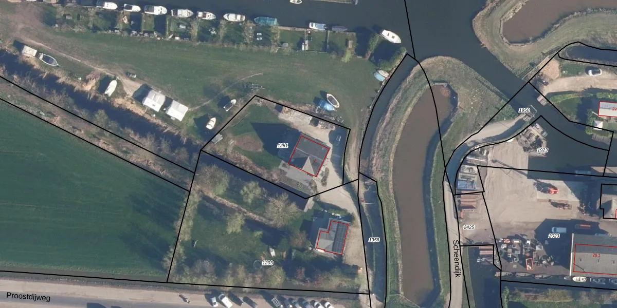 Het perceel waarop Proostdijweg 1 staat heeft een oppervlakte van 965 m². Dit is een groot perceel. De perceeloppervlakte wordt geregistreerd door het Kadaster. Gedetailleerde informatie over de maten van dit perceel kunt u vinden in het rapport Kadastrale kaart met maatvoering van Proostdijweg 1.