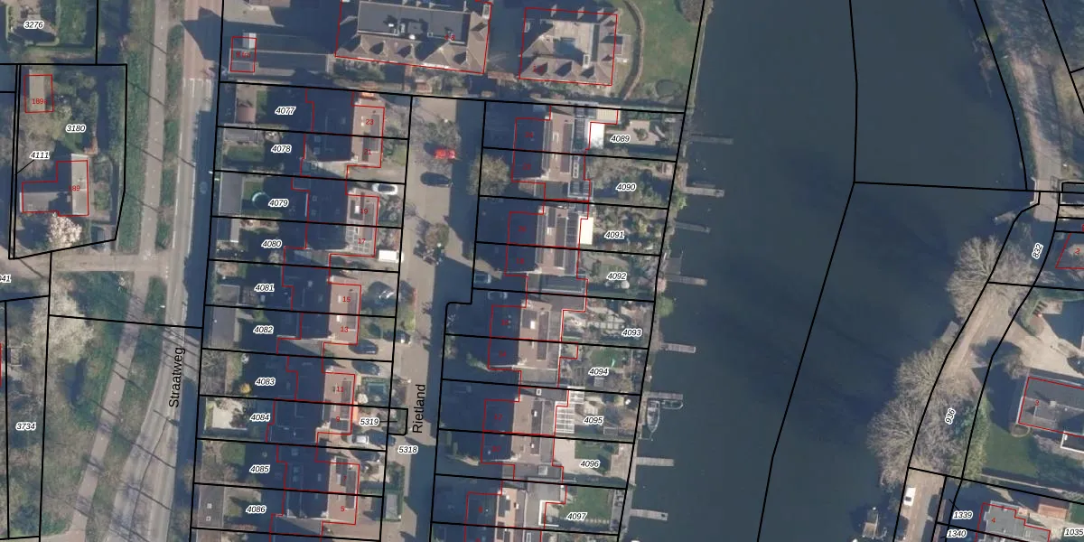 Het perceel waarop Rietland 18 staat heeft een oppervlakte van 305 m². Dit is een groot perceel. De perceeloppervlakte wordt geregistreerd door het Kadaster. Gedetailleerde informatie over de maten van dit perceel kunt u vinden in het rapport Kadastrale kaart met maatvoering van Rietland 18.