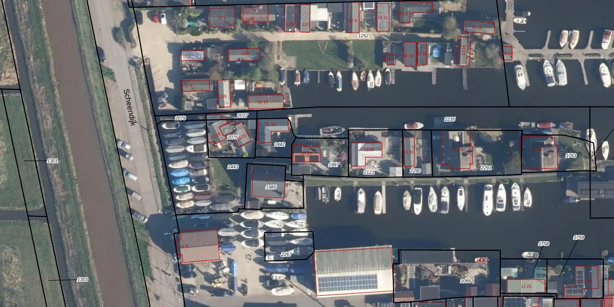 Het perceel waarop Scheendijk 11-27 staat heeft een oppervlakte van 225 m². Dit is een middelgroot perceel. De perceeloppervlakte wordt geregistreerd door het Kadaster. Gedetailleerde informatie over de maten van dit perceel kunt u vinden in het rapport Kadastrale kaart met maatvoering van Scheendijk 11-27.