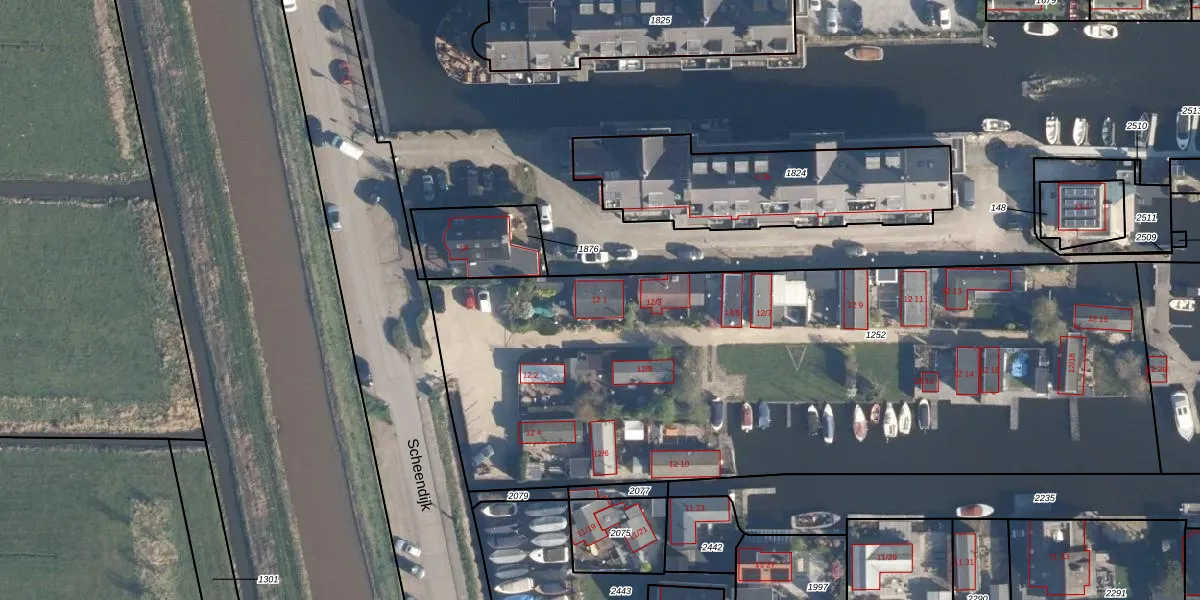 Het perceel waarop Scheendijk 12-1 staat heeft een oppervlakte van 4060 m². Dit is een zeer groot perceel. De perceeloppervlakte wordt geregistreerd door het Kadaster. Gedetailleerde informatie over de maten van dit perceel kunt u vinden in het rapport Kadastrale kaart met maatvoering van Scheendijk 12-1.