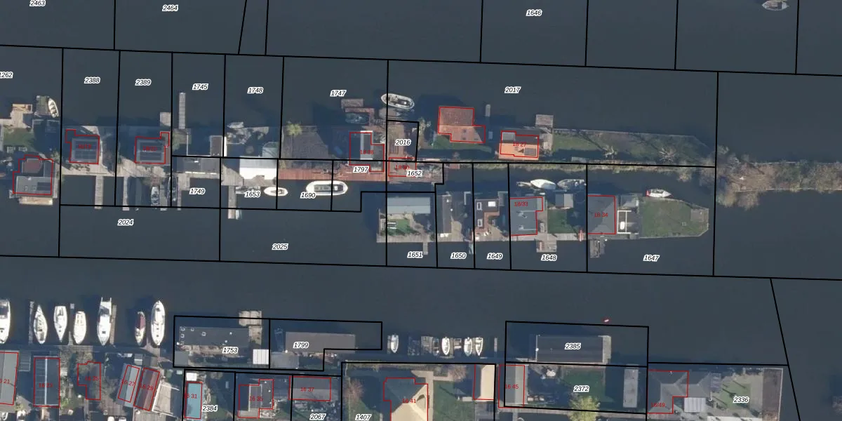 Gebruik de zoekbalk of klik op een perceel voor informatie over de adressen binnen dit perceel.