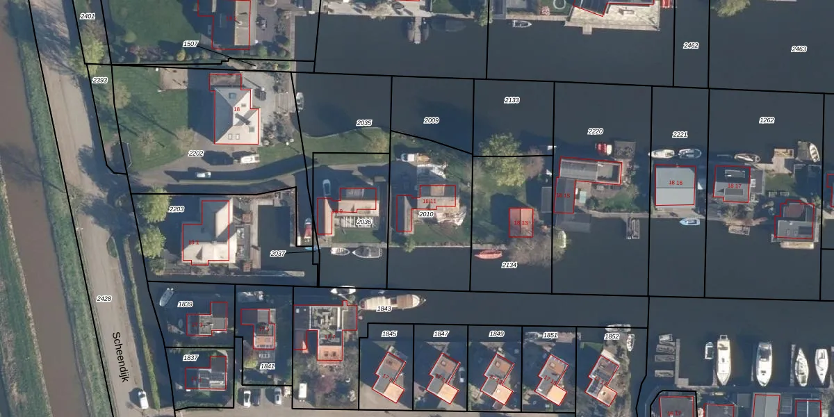 Het perceel waarop Scheendijk 18-11 staat heeft een oppervlakte van 690 m². Dit is een groot perceel. De perceeloppervlakte wordt geregistreerd door het Kadaster. Gedetailleerde informatie over de maten van dit perceel kunt u vinden in het rapport Kadastrale kaart met maatvoering van Scheendijk 18-11.