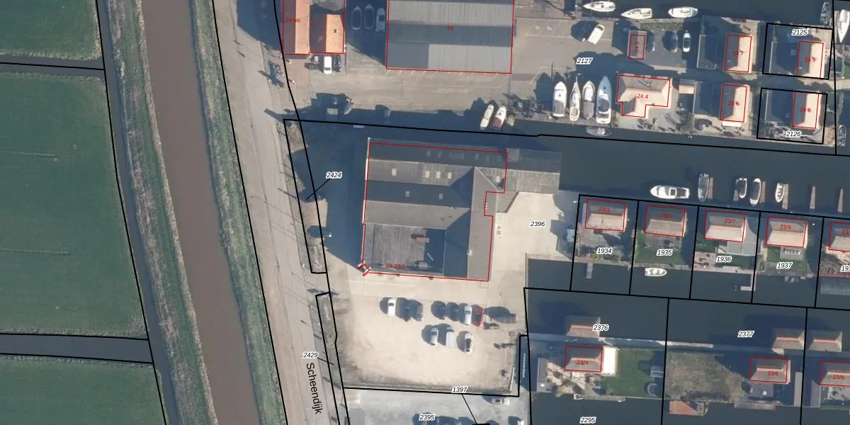 Het perceel waarop Scheendijk 23 staat heeft een oppervlakte van 7749 m². Dit is een zeer groot perceel. De perceeloppervlakte wordt geregistreerd door het Kadaster. Gedetailleerde informatie over de maten van dit perceel kunt u vinden in het rapport Kadastrale kaart met maatvoering van Scheendijk 23.