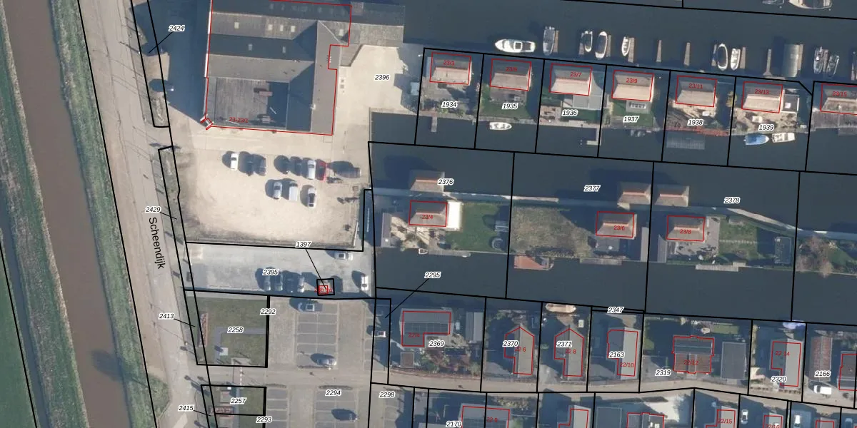 Het perceel waarop Scheendijk 23-4 staat heeft een oppervlakte van 1095 m². Dit is een zeer groot perceel. De perceeloppervlakte wordt geregistreerd door het Kadaster. Gedetailleerde informatie over de maten van dit perceel kunt u vinden in het rapport Kadastrale kaart met maatvoering van Scheendijk 23-4.