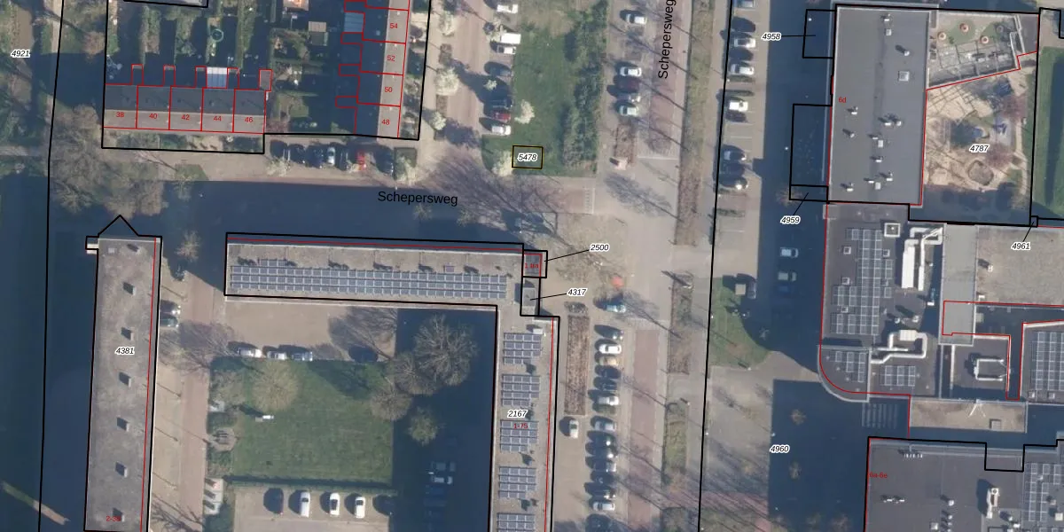Gebruik de zoekbalk of klik op een perceel voor informatie over de adressen binnen dit perceel.