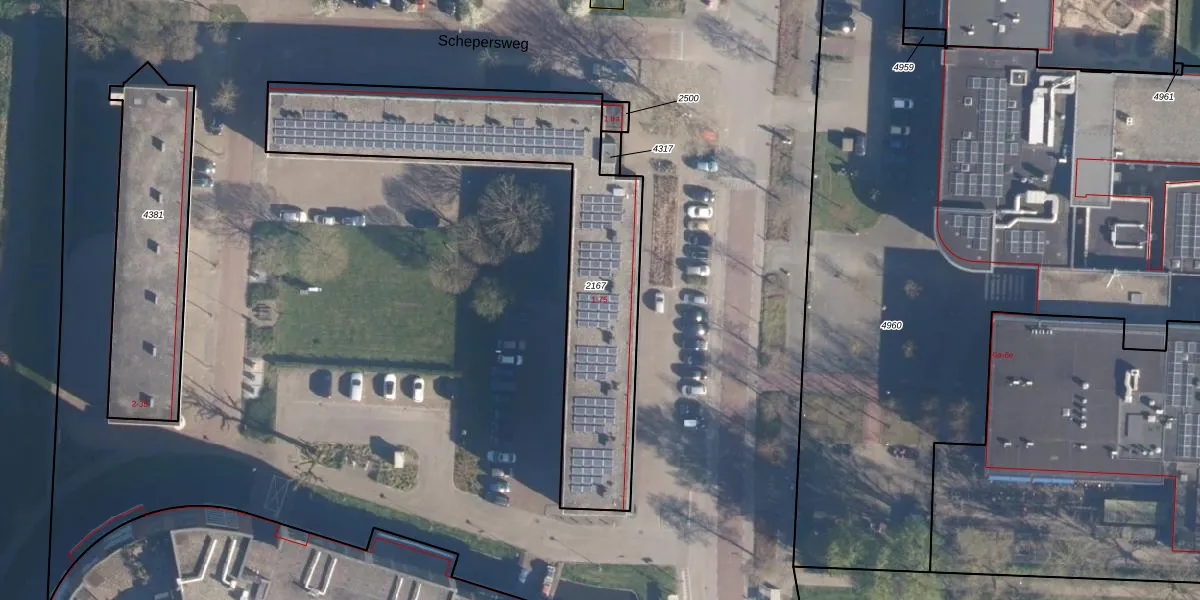 Het perceel waarop Schepersweg 53 staat heeft een oppervlakte van 1319 m². Dit is een zeer groot perceel. De perceeloppervlakte wordt geregistreerd door het Kadaster. Gedetailleerde informatie over de maten van dit perceel kunt u vinden in het rapport Kadastrale kaart met maatvoering van Schepersweg 53.