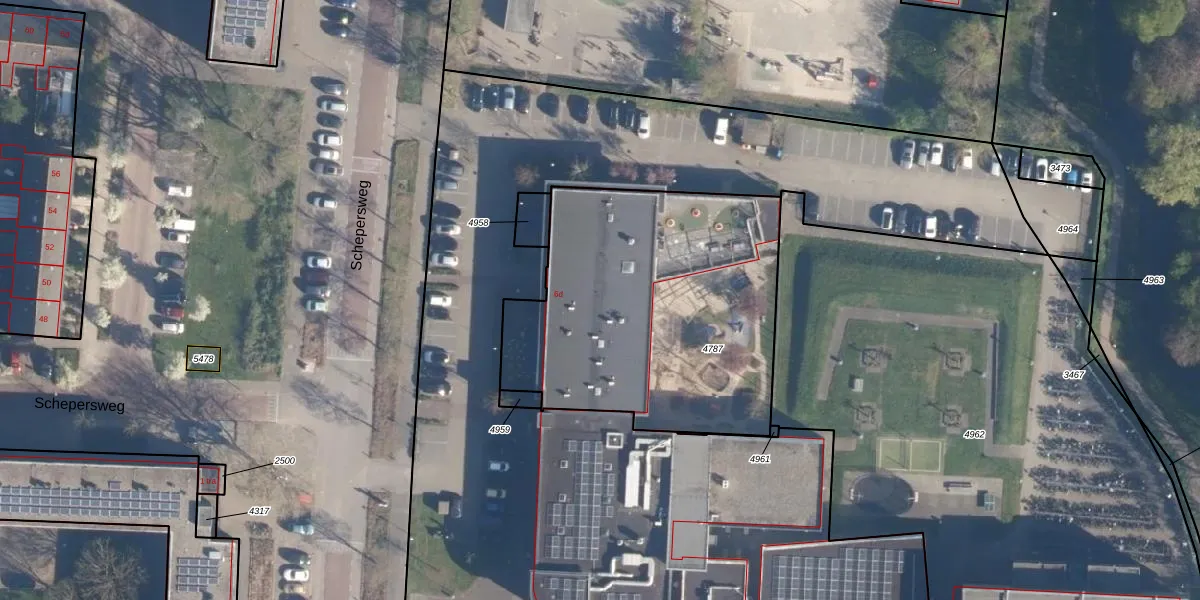 Het perceel waarop Schepersweg 6-d staat heeft een oppervlakte van 1590 m². Dit is een zeer groot perceel. De perceeloppervlakte wordt geregistreerd door het Kadaster. Gedetailleerde informatie over de maten van dit perceel kunt u vinden in het rapport Kadastrale kaart met maatvoering van Schepersweg 6-d.