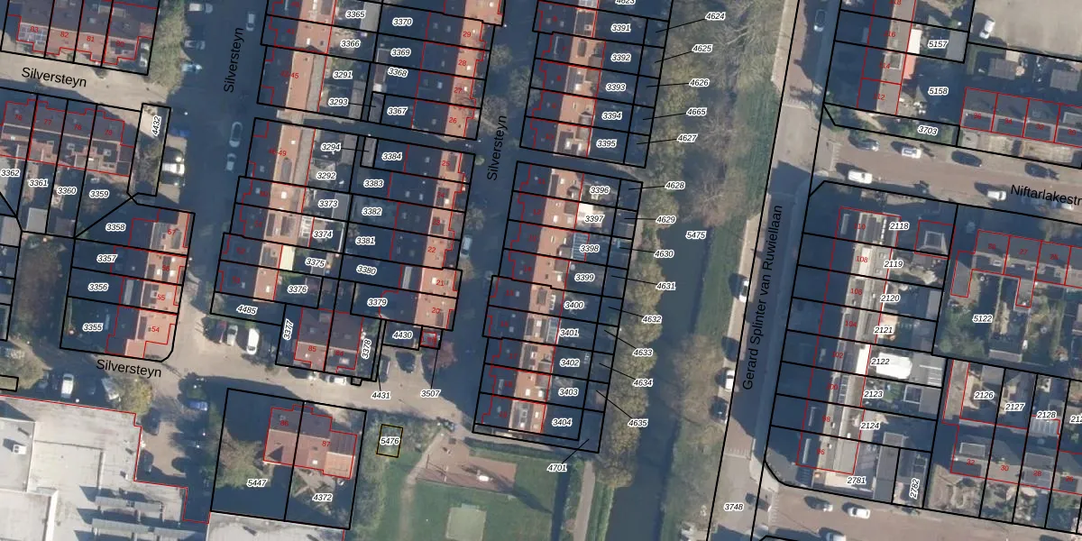 Het perceel waarop Silversteyn 14 staat heeft een oppervlakte van 107 m². Dit is een middelgroot perceel. De perceeloppervlakte wordt geregistreerd door het Kadaster. Gedetailleerde informatie over de maten van dit perceel kunt u vinden in het rapport Kadastrale kaart met maatvoering van Silversteyn 14.