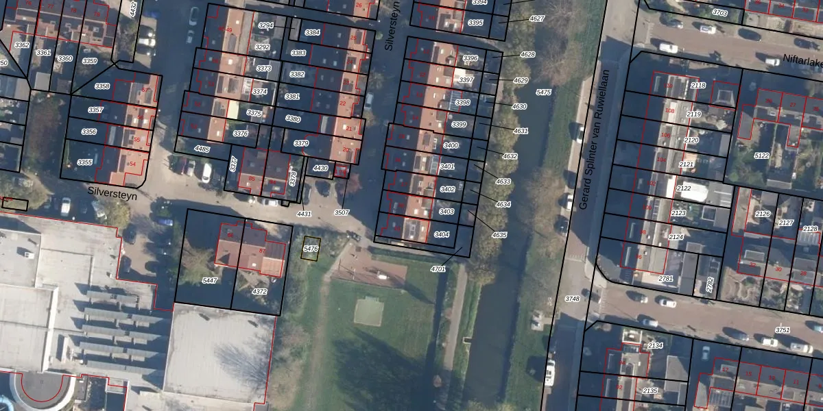 Het perceel waarop Silversteyn 18 staat heeft een oppervlakte van 105 m². Dit is een middelgroot perceel. De perceeloppervlakte wordt geregistreerd door het Kadaster. Gedetailleerde informatie over de maten van dit perceel kunt u vinden in het rapport Kadastrale kaart met maatvoering van Silversteyn 18.