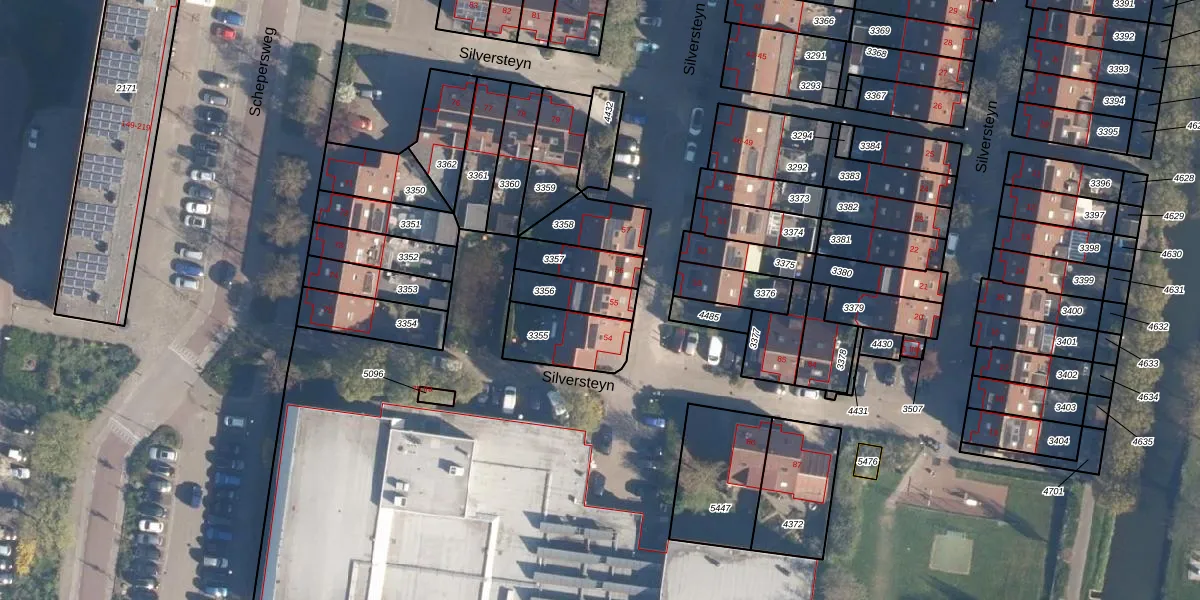 Het perceel waarop Silversteyn 55 staat heeft een oppervlakte van 115 m². Dit is een middelgroot perceel. De perceeloppervlakte wordt geregistreerd door het Kadaster. Gedetailleerde informatie over de maten van dit perceel kunt u vinden in het rapport Kadastrale kaart met maatvoering van Silversteyn 55.