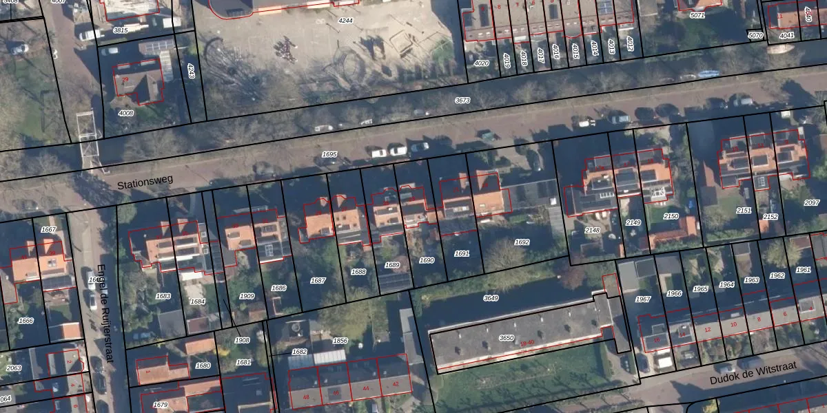 Gebruik de zoekbalk of klik op een perceel voor informatie over de adressen binnen dit perceel.