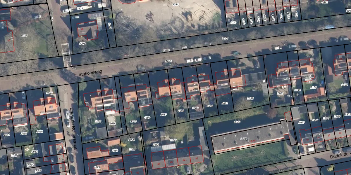 Gebruik de zoekbalk of klik op een perceel voor informatie over de adressen binnen dit perceel.